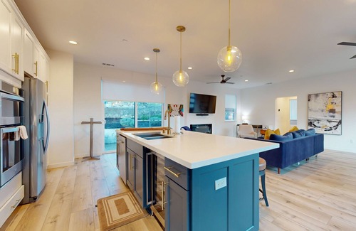 Escape to this stunning contemporary home in Glen Ellen, CA, where you'll be surrounded by beautifully landscaped gardens and breathtaking views from every room. The open floor plan, on-trend fixtures, and serene palette create a welcoming and modern atmosphere that is perfect for relaxation and entertainment.