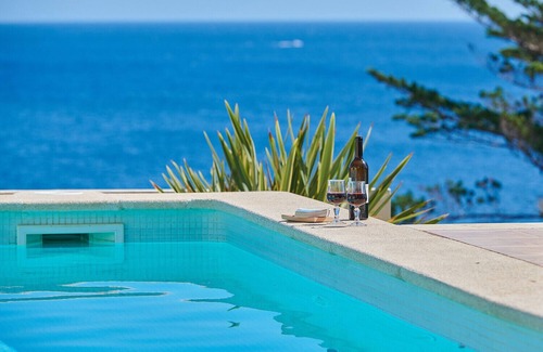 The covered terrace offers a wonderful view of the sea. You can also enjoy a wonderful view of the sea while taking a dip in the pool.