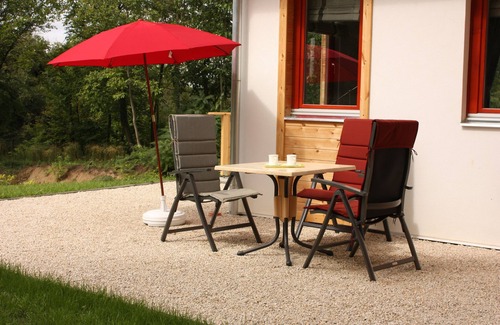 Basement villa 2 is situated in a quiet spot on the northwest edge, overlooking Lake Balaton. This villa has a garden with two terraces on different levels, so there is always a place to find both in the sun and in the shade. The impressive lower garden of this vacation home is no less than 600 square metres, which means there is space enough to place sun chairs or a swimming pool. It is not surprising that children love this garden to play in. The basement villa 2 has a modern and stylish interior, which is completely adjusted to the luxurious anthracite floor tiles. The mouse-gray kitchen, the black wood stove, the parquet in the bedrooms and the fire-red couch finish it off. An advantage of this house is that it has extra long beds and insect screens for every window.