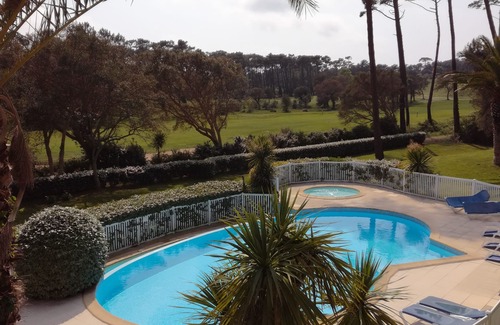 About 700m from the beach, facing the golf course, 46m2 apartment, refurbished, for 4 people, with a large terrace, in a quiet and sunny luxury residence, with secure swimming pool, comprising: