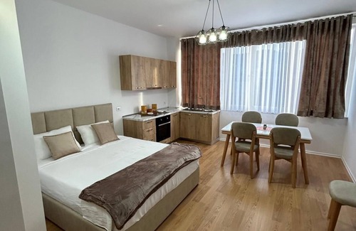 Nestled in Tirana, this 1-bedroom, 1-bathroom apartment brings it all within your reach. Fans of nature and the outdoors will love being 3 minutes by car from Artificial Lake of Tirana and 3 minutes from Grand Park of Tirana. Kompleksi Delijorgji is an easy 7-minute walk away and Latitude Tirana is also a quick 12-minute walk away.