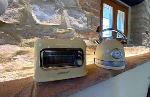 The apartment is fully equipped for self-catering: an induction stove, a Nespresso coffee machine, and a dishwasher ensure comfort, while a washing machine is available for your laundry needs and can be shared with other guests. On hot days, a powerful fan provides a pleasant breeze, and on cooler evenings, the fireplace creates a cozy atmosphere. The thick walls keep the apartment pleasantly cool in summer, and a modern ceiling fan ensures a refreshing night’s sleep.
