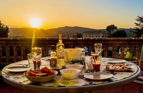 Apartment Montserrat (Premium) is a penthouse apartment ideal for 2 pax or couples. It is extremely spacious and offers an extra sensation of noble grandeur due to the 6.5-meter-high beamed ceilings. The large balcony provides spectacular views of the castle and the medieval village. The apartment is cool in summer and cosily warm in spring, autumn, and winter (underfloor heating using solar energy). It also has wide doorways and no thresholds (except for the balcony), making it accessible to everyone (elevator available). There's a deep sense of mindfulness here – they use water from their own spring and solar energy for electricity, hot water, and underfloor heating. Apartment Montserrat is available with 2 bedrooms and one bathroom, but also with 3 bedrooms and 2 bathrooms, choose your favorite one: Low and medium season for 2 persons: Standard 2 bedrooms and 1 bathroom Low and medium season for 3-4 persons: Possibility to book with 3 bedrooms/2 bathrooms Low and medium season for 5–6 persons: Standard 3 bedrooms/2 bathrooms High season for 7 persons: Standard 3 bedrooms/2 bathrooms