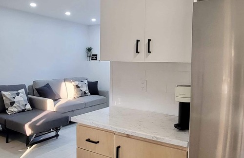 A fireplace and air conditioning are featured at this 1-bedroom, 1-bathroom rental. Bathroom amenities include a hair dryer, towels, and toilet paper. The kitchen is equipped with an oven, a stovetop, and a refrigerator, as well as a coffee maker, an electric kettle, and a microwave. And you can even pack a bit lighter because there's a washer and dryer.