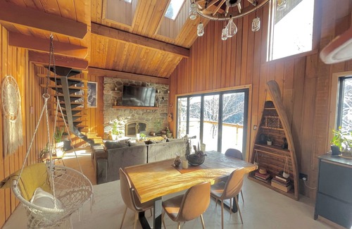 Minutes from Mont-Tremblant Village & next door from Mont Blanc resort, slopes, cafes, restaurants, galleries, markets, and the region's best attractions. Enjoy total tranquility on a vast wooded property with no neighbors or noise.