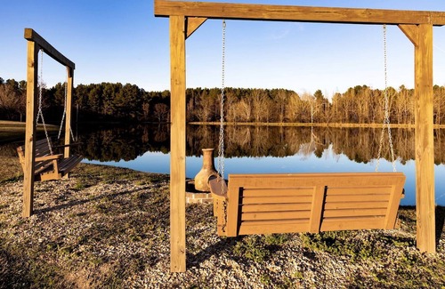 Enjoy the peace and beauty of nature while still getting to stay in a comfy, king suite, which sleeps two people. Come and enjoy walking trails, catching trophy largemouth bass, relaxing in the swings by the lake, hearing the bluebirds sing, and so much more. Conveniently located in Tupelo, MS, you get all of the benefits of being in nature while being able to drive into town for shopping/dining.