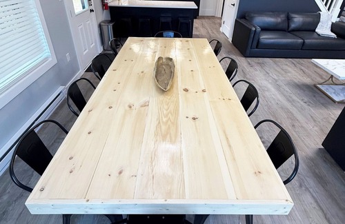 • Oversized custom dining table with seating for 12+ guests