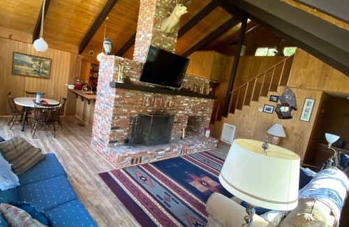 This just newly renovated Mountain Cabin (June 2020) features1 bedroom downstairs, large sleeping loft/play room upstairs, Living room with gorgeous fireplace and nice area for the family. Windows everywhere with views in the winter of the surrounding mountains and gorgeous HUGE oaks leafed out in the summer. Has 2 sleeper couches in the living room and windows all around. Upstairs loft that sleeps 4 easily with tons of room to hang out and for the kids to watch their own TV. Sits on a level lot with views out of the vaulted ceiling windows. Brand new deck with furniture, and area under the oak trees with a picnic table and benches. A short 40 minute drive to The Trail of 100 Giants and along the way you can visit the historic Camp Nelson, Ponderosa Lodge, Dome Rock and Peppermint recreation area. The Tule river and redwoods are minutes away. A relaxing getaway with all the comforts of home. Very usable outside space, level with nice natural grass yard. Wildlife including deer, squirrels, rabbits etc.