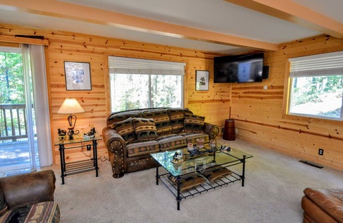 Looking for a private and stunning setting.... well look no longer! Moose Manor is the perfect cabin for your Sierra Get Away! This quaint cabin set among the pines provides a private and tranquil setting located in Fly-In Acres and has free access to Fly-In Lake. With 2 bedrooms both upstairs, one with a Queen and the other with 2 Twins, 1.5 baths and a very spacious great room with a Queen Air Mattress. The large deck is a great spot for that family BBQ after a fun day at the lake. Lots of land for exploring, collecting pine cones or building a snowman. Stay warm with forced air heat and a woodburning stove.
