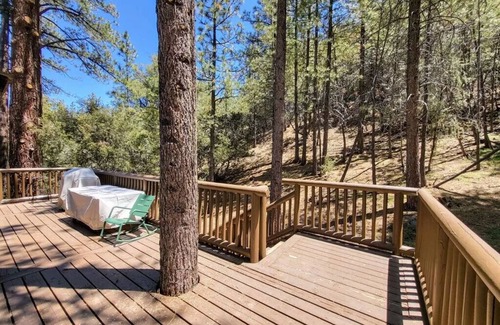 Quaint peaceful romantic log cabin situated in the woods. Smell the fresh air breeze flowing through the surrounding pine trees and hear the birds chirp their greetings. Perfect cabin to light a fire and relax away from the hustle and bustle. Set in a private community with numerous hiking trails, community pool, tennis court and a 9 hole golf course.