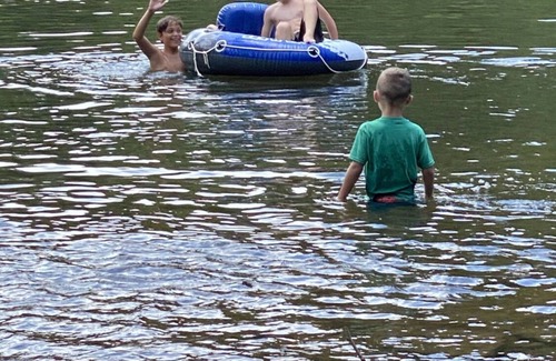 Beautifully renovated, secluded mountain home. Enjoy a fire outside or on the front porch listening to the babbling Brook in front of the house. 4 miles down the road is the Toe river for tubing, swimming or fishing.