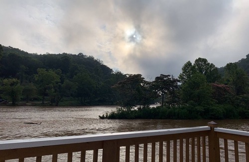 Spacious deck overlooking the Tuckasegee River, for dining by the River. This tiny home cabin is small but spacious perfect for making memories. This cabin includes on overhead loft with a bed. Located in the mountain valley in Bearhunters Campground. This is a small quaint campground with cabins on the riverfront. You are only 10 minutes away from all the Excursions or activities, Cheerokee is only 15 minutes away. Please come and enjoy!?Location on the river. Watching the geese and guided fly fishing boats lazily drifting down the river. The trains from Bryson City going down the tracks, either blowing the mourning sound of the steam whistle from the steam engine or the woeful sound of the diesel locamotives horn, gives you a sense of awe. Would recommend Your Next Greatest Adventure