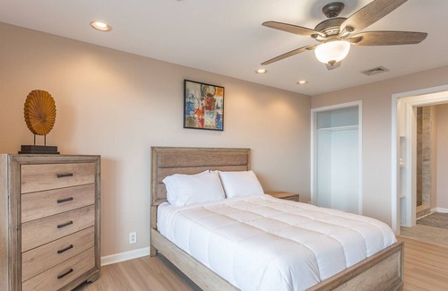 There are four spacious bedrooms with a queen bed in each. Two bedrooms offer sofa beds to accommodate for additional sleeping space, if needed. This property is airy with floor to ceiling windows welcoming sunshine; you might want to bring an eye mask if you are sensitive to light.