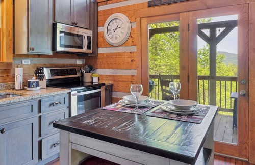 The kitchen is fully equipped for making a quick breakfast or gourmet dinner. Cabin has a Keurig that uses both loose grounds or pods. The open floor plan allows you to enjoy each others company while cooking and watching movies together.