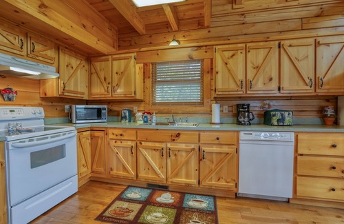 stocked kitchen gives you the option of enjoying your meals at the cabin. The
