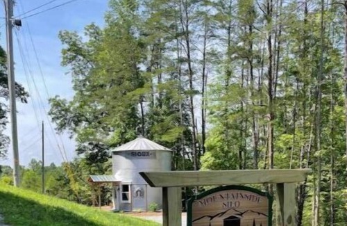 Come to the beautiful mountains of north Georgia for a unique stay in a grain silo turned into an upscale tiny home. Nestled into a private lot you can enjoy a quiet cozy getaway in the evenings after a day of shopping or outdoor activities at the many nearby attractions. Are you hungry? You can cook on the grill outside by the firepit or make a full meal in the kitchen. The living room is set up for relaxing with a good book or favorite TV program before settling in for a good nights sleep.