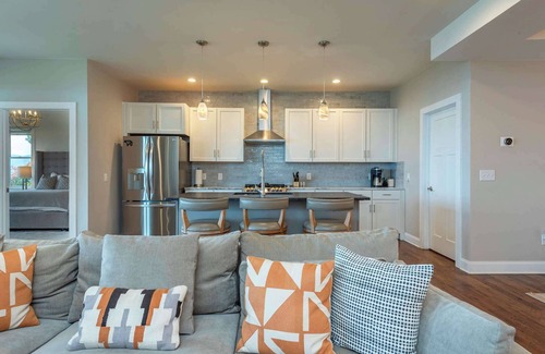 Inside, the home is thoughtfully designed for families and friends to relax and reconnect. Enjoy a fully stocked, beautifully furnished kitchen for cooking together, or unwind around the indoor fireplace with a glass of wine. The open-concept living and dining area is filled with natural light and cozy touches throughout.