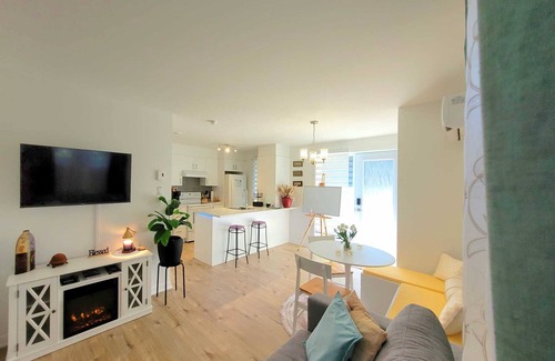 Comfortable modern one-bedroom apartment in Longueuil! Perfect for professionals from Pierre-Boucher Hospital, students from the University of Sherbrooke or Cégep, and families. Bright open living room, fully equipped kitchen, private garage, outdoor seating, cozy fireplace, fast wifi, smart TV, workspace, washer/dryer, sofa bed, pets allowed, in a quiet and green neighborhood. Explore DIX30, Mont-Saint-Bruno Park, Michel-Chartrand Park, Tremblay Woods, Promenade Saint-Bruno, ski slopes, just minutes away, with easy bus routes to Montreal!