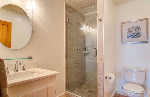 The spacious courtyard between the Casita and the Agave features three patios with comfortable outdoor furniture, and the entire space is landscaped with lush greenery! Strings of glittering lights throw sparkling touches over the outdoor setting, creating spectacular highlights on the surface of the pool. You'll also find a fire pit and gas grill; there's nothing like a poolside BBQ feast, or roasting s'mores under the stars! And all that space is yours alone, setting the perfect stage for a romantic escape. Please be aware that Mucho Gusto is a pet-free and smoking-free property.