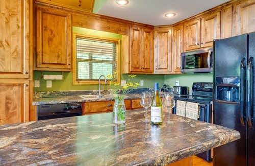 Embark on the ultimate getaway in Murphy at this 4-bed, 3-bath vacation rental. With ample space and at-home comforts, this abode promises a memorable stay. Soak in mountain views from the hot tub or gather around the fire pit for s'mores. Grill up a feast on the gas grill or enjoy a variety of outdoor games, including badminton and volleyball!