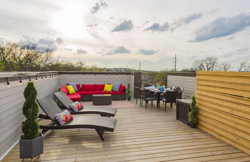 A unique Nashville experience in this new construction urban chic townhouse with downtown skyline views from a huge rooftop deck with neon wings and outdoor kitchen. With close proximity to all Nashville hotspots and Vanderbilt University this property books fast.