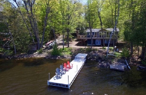 Bring the whole family this 4 season cottage and make lots of fun memories. Enjoy cottage life with all the amenities of being at home. Beautiful, spacious deck with stunning lake views. Two levels with separate kitchens, full bathroom, living area and bedrooms in the walkout basement. BBQ, fire pit, Zip Line, kayaks, paddleboards, canoe, rod & tackle included! Great fishing right off the dock!