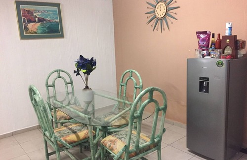 Muy cerca del centro y del malecón costero. Es una casa muy amplia e iluminada de una sola planta, con estacionamiento para un auto compacto. Tiene un patio trasero y otro patio delantero, cuenta con cocina, comedor y sala, además espacio Isela televisión y tiene un escritorio con sillón y computadora conectada a internet, también cuenta con netflix y pantalla de TV SMATH