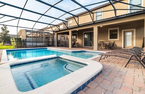 ChampionsGate Resort Vacation Pool Home - includes resort clubhouse amenity access Our 9 bedroom 5 bathroom private vacation pool home is a great option for families wanting a home base to enjoy the best of all that Central Florida has to offer ChampionsGate Resort Private Pool Home Sleeps up to 27 9 bedrooms 5 bathrooms Private Pool w Spa - South Facing No Rear Neighbors Game Room including Pool Table and Foosball ChampionsGate Resort Gated Community 10 miles to Disney World property Fully equipped Kitchen with seating for 8 at the dining table and 5 spots at the breakfast counterBEDROOMS First Floor - Master Suite 1 - One King Bed Attached Bathroom - Master Suite 2 - One King Bed Attached Bathroom BEDROOMS Second Floor - Bedroom 3 - One King Bed Shared Bathroom - Bedroom 4 - Two Twin Beds - Bedroom 5 - One Queen Bed Shared Bathroom - Bedroom 6 - One Queen Bed Shared Bathroom - Bedroom 7 - Two Double Beds- Bedroom 8 - One Twin Bed and One Double Bed Shared Bathroom - Bedroom 9 - One Twin Bed over One Twin Bunk Bed One Twin Bed over Double Bunk Bed and One Twin Bed over Double Bunk BedPool Spa Charges and Information There is an additional optional charge of 30 per day plus tax to heat the pool spa The spa will not warm up without the added pool heat Please note that our pools are serviced on a weekly basis Resort Parking Rules The resort allows a maximum of 5 cars or 3 large passenger vans Do not block the sidewalk or park on the street or the resort will fine you For visitors there is a maximum of 10 cars per property ChampionsGate Resort Amenity Access Included with Rental We are pleased to offer two clubhouses at Championsgate Resort- this property is located closest to the Oasis ClubhouseIt is a 2-minute drive or 10-minute walk to the Oasis clubhouse from this property address Huge resort-style pool with pool-side cabanas Exciting water slide Relaxing windy lazy river Interactive children s splash park State-of-the-art fitness center Movie theatre The Grille restaurant full-service restaurant 18-hole challenging golf course Pool-side tiki bar Playground Volleyball courtsDistances from Resort to Shopping Attractions Walt Disney World - 10 miles Universal Studios - 21 miles SeaWorld - 18 miles Orlando Airport - 30 miles Atlantic Coast Beaches - 78 miles Gulf Coast Beaches - 84 miles Publix Supermarket - 2 miles Walmart - 7 miles Dining - 2 milesWhy Choose this Rental Professionally managed to serve all your needs Management company has over 26 years of experience hosting well over 200 000 families Go straight to your rental with online email check-in 24 7 on-call maintenance No Resort Fees Free On-Site Parking Smoke-free and pet-free for your comfort Towels and linens are provided Complimentary WiFi Additional Rental items Available e g 3 4 burner BBQs cribs pack-n-plays strollers high chairs etc Our starter welcome packet supplies 2 rolls toilet paper per bathroom 2 round hotel-size bar soap per bathroom 1 hotel-size shampoo conditioner per full bathroom 1 roll paper towel 1 packet dishwasher detergent 2 trash bags size-13-gallon 1 small box laundry detergent enough for one load Garbage can liners in each bedroom bathroom small garbage cansAny supplies beyond this are up to the guest to replenish we do not restock these items No salt pepper or cleaning supplies are stocked due to safety issues This is an industry-standard practice FOR GUESTS WHO BOOK 30 NIGHTS OR LONGER STAYS this does not apply if you are staying less than 30 nights We will collect a 1 500 deposit Balance is due 60 days prior to arrivalIf canceled 90 days or more before arrival we keep with us 250 00 1 250 00 will be refunded If canceled between 61 and 89 days prior to arrival we keep with us the 1 500 00 deposit No cancellation or modification 60 days or less prior to arrival