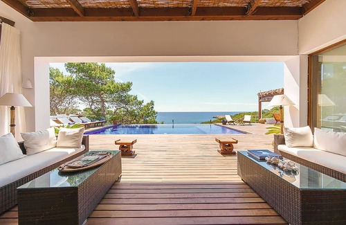 Inside the villa has a large living and dining area with plasma TV (TDT), access to the pool terrace with outstanding sea views. The dining room can sit 10 people.