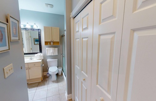 This spacious 2-bedroom, 2-bathroom condo at Myrtlewood Villas offers comfort and convenience. With modern design and amenities, it accommodates up to 6 guests. The fully equipped kitchen includes all essentials, and the open living area has cozy furnishings and a flat-screen TV. Both bedrooms feature comfortable beds and ample storage, and the bathrooms are stocked with essentials. The condo also includes an in-unit washer and dryer, free Wi-Fi, and a private balcony to enjoy scenic views.