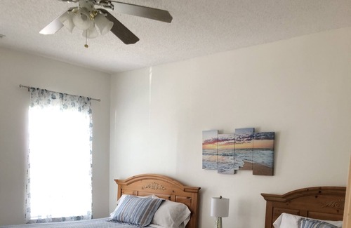 You will be very comfortable is this clean, bright, and spacious condo with new carpeting on stairs, new linens and towels. It has two large bedrooms each with 2 full beds and a full bath, with lots of extra space for air mattresses. We will provide the linens and towels. Full kitchen equipped with everything you need to prepare meals in. Dining table that seats 4. Washer and dryer in unit. Living room has large television, sofa and 2 chairs for relaxing after a long day of sun and fun. Amenities include community pool and tennis courts.