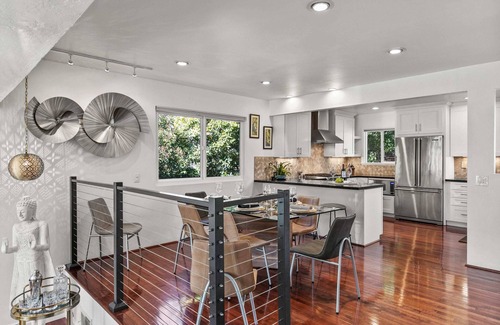 This dynamic property includes a two-story main house offering four (4) luxurious bedrooms with brand new beds, premium linens, flatscreen Smart TVs, and renovated ensuite bathrooms. Additionally, an adorable guest house sports its own bedroom, bathroom, and cozy living area with a sleeper sofa. With ample space for everyone, “Mystic Wave” is the perfect place for each member of your group to unwind and savor the serenity so essential to a Carmel vacation. At the same time, the home celebrates the ideal of togetherness with its open concept great room, dining room, and back patio equipped with a gas grill, table, and fire pit.
