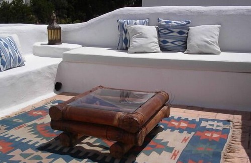 . The little villa is built in the Ibiza white characteristic style, it is 70m square and has three terraces with views to Es Vedra and the sunset over the Mediterranean sea. The villa is perfect for couples or couples with a baby that are seeking sun, beautiful beaches, amazing sunsets, relax and the famous Ibiza nights. Not suitable for childrens, do not smoke, and not pets.