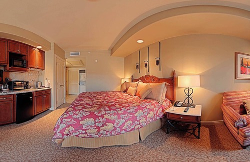 The Vino Bello Resort is a luxury resort, in the picturesque heart of California Wine Country, Napa. The resort separates itself from other accommodations by offering more than a place to rest at night, while the friendly staff at the concierge can help arrange Napa Valley Wine tasting tour. Just a short drive from the area’s most famous vineyards, the resort provides many amenities to help fill the gaps between outings. An example of this would be the two heated swimming pools and pair of fitness centers. Some units include wider than typical unit interior doorways, all doors have lever handles, roll-in shower, handheld shower head, grab bars in the shower, grab bars around the toilet, raised toilet (higher than typical units), front door wide-angle wheelchair height peephole, first-floor handicap accessible access, Braille signage for room numbers