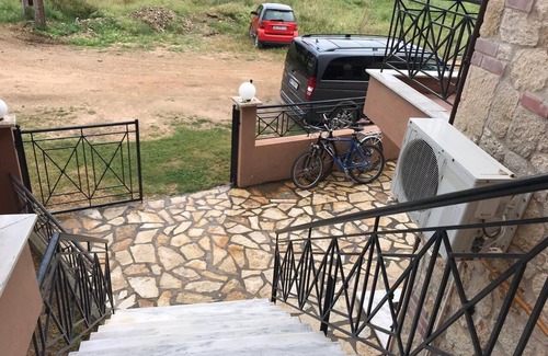 We invite you to a summer holiday in Nikiti in a comfortable townhouse with a barbecue area and a small courtyard. The sea is 300 meters away, the central beach and restaurants are 400 meters away. A two-story apartment with two bedrooms, a full kitchen-living room, a shower and 2 toilets, a balcony and a washing machine. Each room has air conditioning. Suitable for a family with children or for a group of up to 5-6 people.