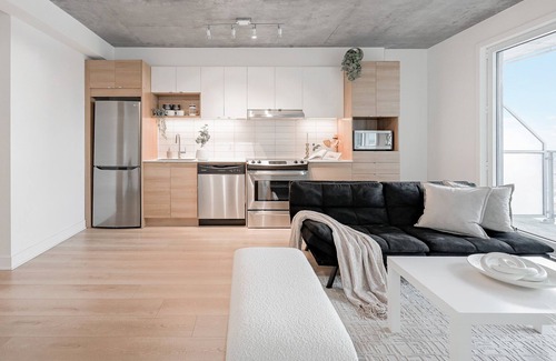 Enjoy this tranquil nest in the heart of Montreal at this Nordic themed home perfect for a couple. Only minutes away from popular restaurants & shopping destinations on St. Catherine. It is a perfect location if you are looking for a short walk to the Bell Centre to catch an event.