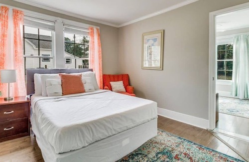 Unwind at this adorable blue beach style bungalow. Delightful on DeSoto welcomes you with a white picketed fence, large porch, and open living room. This home sleeps 10 guests throughout its four bedrooms. Enjoy the mile walk to Seville Historic District which offers lots of shops and restaurants. It is also just a 10 min drive to Admiral Fetterman Field, 15 Mins to sunny Pensacola Beach, 25 NAS Pensacola. We look forward to hosting you!