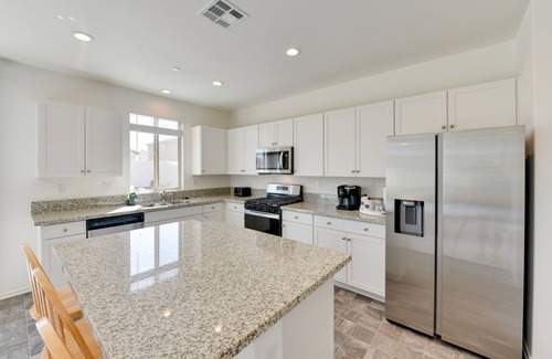 Yearning for a sun-soaked getaway in the Southern California desert? This 4-bedroom, 2.5-bathroom Coachella vacation rental checks off all the boxes for a tranquil retreat. Conveniently located 3 miles from Empire Polo Field and Plantation Golf Club, this 2-story house offers a serene escape, brimming with amenities for all ages. Spend the day out in Joshua Tree National Park, then return home for a family barbecue and gather around the fire pit for storytelling and s’mores-roasting.