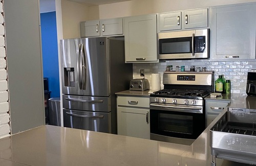 We own a one floor, 1,800 sq. feet home that sleeps up to 10 people. Sleeping areas include: 1 king bed, 1 queen bed, 2 twin loft beds, 1 sofa bed and 1 queen foam mattress for a floor sleeping set-up. Our house has a modern layout where dining area, living area and kitchen all connected. We have a large backyard with kids swing, a tree house and a slide set, an outdoor dining table that sits 12, an outdoor sofa and grill for your use. This house is located 5 minutes from 1-10 highway. There are many fast food locations on our street, a gas station across the street from our neighborhood and a family dollar on the corner of our neighborhood. Home is very close to La Cantera, The Rim, Fiesta Texas, Top Golf and many other restaurants and entertainments.