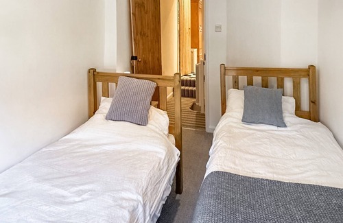 Bathroom 1: Cubicle Shower, Toilet. Gas central heating, electricity, bed linen, towels and Wi-Fi included. Initial fuel for wood burner included. Travel cot, highchair and stairgate. Enclosed back garden with patio and garden furniture. Bike store. Private parking for 1 car. No smoking. Please note: There are 9 steps in the garden. . This meticulously renovated 1800s cottage provides a delightful escape, offering a private parking bay at the rear and a spacious enclosed garden with a patio - perfect for basking in the sunshine and savouring a morning coffee. The open-plan living room at the front of the cottage welcomes you with its warm ambiance. The wood burner takes centre stage, surrounded by a sofa and armchair that invite relaxation. The extending dining table, nestled by the window, offers a cosy spot for shared meals. The separate, well-equipped kitchen features a small breakfast bar and a door leading to the picturesque garden. Upstairs, the master double bedroom exudes charm with its beautiful feature fireplace, while the compact yet well-presented twin bedroom offers a comfortable retreat. The welcoming shower room, with a raised cubicle featuring a rainforest shower, completes the upper floor.