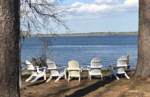 The River House sits on several acres of wooded property with the home situated near the bank of the Neuse River. With 4000 square feet of space this house has 4 bedrooms, 3 1/2 bathrooms with accommodations to sleep 12, a chef's kitchen stocked with all the essentials, a large eat-in Kitchen, a formal dining room and a large living room with TV. Throughout the house, the waterfront views and charming touches display the southern charm of this traditional home.