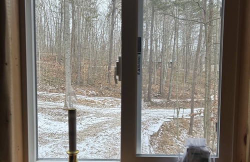 NOW OPEN !!! Nestled deep in the mountains is this cozy real log cabin. Perfect for romantic getaways, family gatherings, this is a great place to unwind and get away from it all , spend time relaxing on your private deck surrounded by the sounds of nature with all the comfortable amenities of home including a nice kitchen and spacious bath with a deep soaking tub and rainfall shower , a bedroom furnished with a full sized bed, 60” smart tv, a comfortable fold out couch is located in the living room for additional sleeping, the 30 foot covered front porch has a view of a hill side overlooking the mountain. It’s secluded and very peaceful. This cabin is located directly on land you are allowed to ride your atvs, ( a $30 daily riding fee ) pets are welcome please just be sure to put them on your reservation so they are included , feel free to message me with any questions you may have. I will answer as promptly as possible. I look forward to hosting you with an amazing stay.