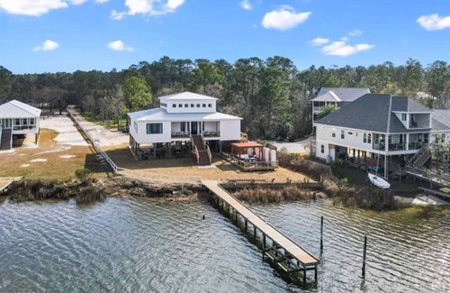 New, bayfront custom home with pier for your boat plus outside deck is located in Gulf Shores. New, bayfront custom home with pier for your boat plus outside deck provides accommodation, featuring Designated Smoking Area, Balcony/Terrace, Accessibility, among other amenities. This House features Designated Smoking Area, Balcony/Terrace, Accessibility, to make your stay a comfortable one.