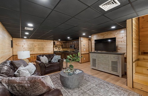 In addition to the full-sized main kitchen, the basement is also equipped with a kitchen with a fridge, microwave, and oven. We designed this home for our family of 5 to get away and escape to the North Georgia Mountains. Well equipped to host a large family or a group getaway.