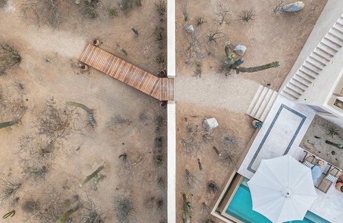 Un refugio de lujo diseñado para familias y parejas que valoran la privacidad, el confort y la conexión con la naturaleza. Disfruta de dos habitaciones principales con camas king size y dos habitaciones adicionales con literas, perfectas para grupos. Sus 4.5 baños destacan por su diseño único con cactus integrados. Relájate en la alberca privada, contempla el horizonte desde el espectacular rooftop y disfruta de la cancha de pickleball. Naturaleza y elegancia en perfecta armonía.