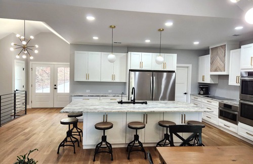 KITCHEN: Well appointed kitchen. Drip coffee maker, double oven, induction cooktop, TWO refrigerators, dishwasher, dishware & silverware. Kitchen island has seating for 6 and dining table can seat 8.