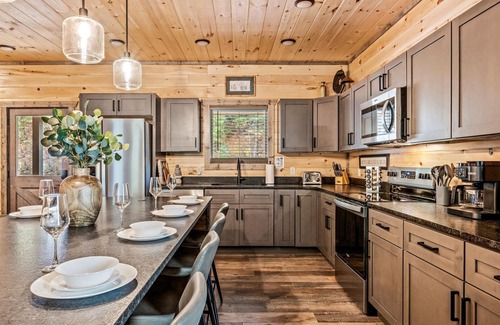 Woodland Splash is a BRAND NEW cabin located just a short drive to all the entertainment the area has to offer. Featuring 3 King Bedrooms (2 of which are Master Suites), bunk room (2 Kings, 2 Twins), 2 large decks with Hot Tub, fun game room and the indoor heated saltwater pool there is plenty of fun and space for everyone.