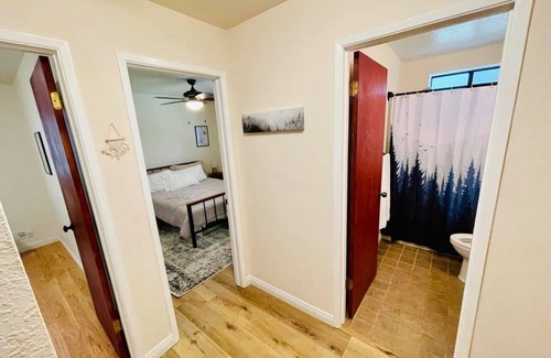 Relax with the whole family at this peaceful cabin in the pines! Located in the beautiful Sierra Nevada mountains, this family friendly (yes, even the furry ones!) cabin features a master bedroom with a cal king, a bedroom with queen bed, and bedroom with a bunk bed, three bathrooms, fully-stocked kitchen, a peaceful sitting area overlooking a deer trail, and game room with air hockey and pop-a-shot, making it the perfect escape for you and your family.