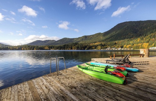 Our lakeside cottage for up to 5 guests features a new deck, private dock with kayaks, two fire pits, an open bar concept, and a BBQ grill.