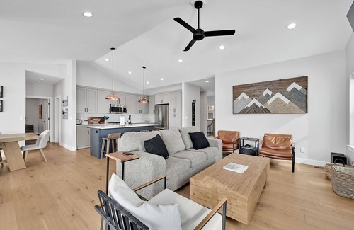 The great room is perfect for entertaining or relaxing with generous seating for eight to watch a movie inside by the fire or move outside for cards, jenga or watching the sunset over the mountains. You can access the laundry room in the hallway across from the pantry. You'll find storage for all your summer and winter sports gear in the garage and can hang coats or place shoes in the spacious mudroom off the garage.